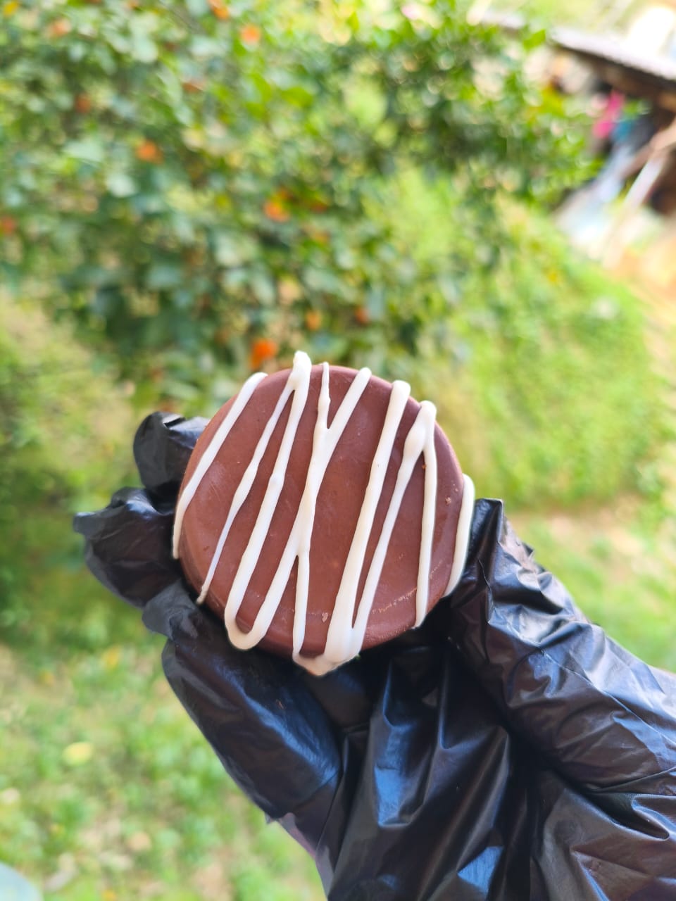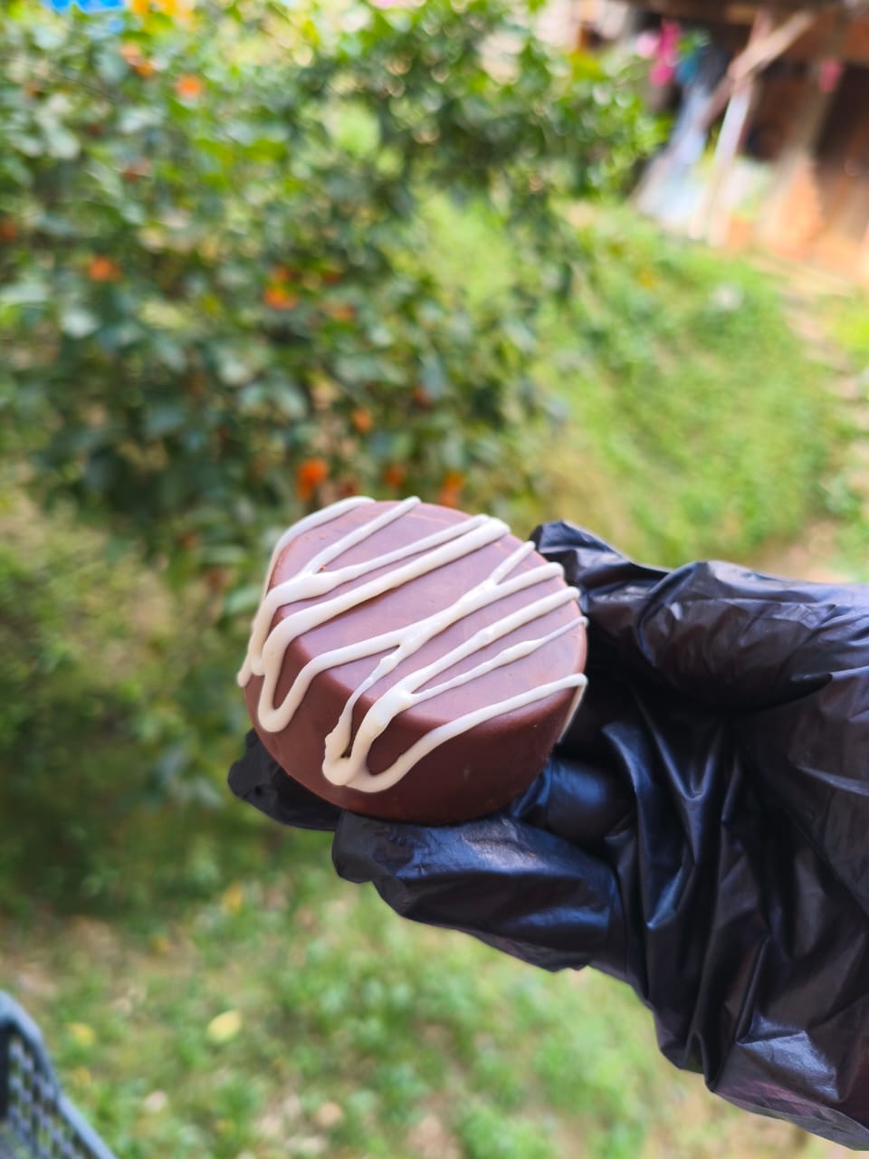 Nossos pães de mel são recheados com delicioso recheio artesanal e cobertos com chocolate.