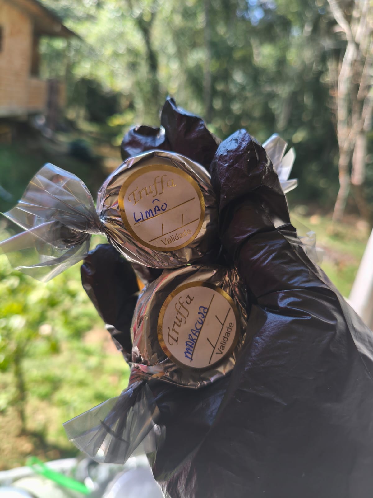 Casca de Chocolate: Branco ou Preto. Recheios: Limão, Coco, Morango, Maracujá, Ninho e Brigadeiro.